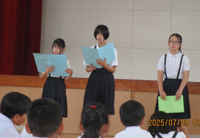 5日に人権集会を行いました。縦割り班ごとに分かれ、自分が頑張ったことを紹介し合い、みんなで頑張ったことを褒め合いました。また、3学期にがんばることを話し合いました。「よかったね」「すごい」という言葉が聞こえてきて心があたたまりました。