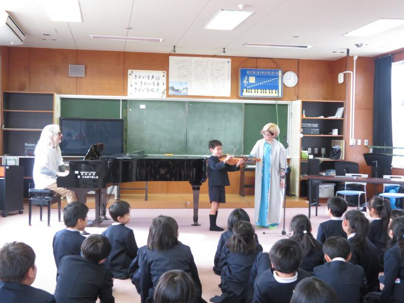 子どもたちは、ヴァイオリンの音色にうっとりしたり、夢に向かって何をすればよいか考えたりと素敵な時間を過ごしました。