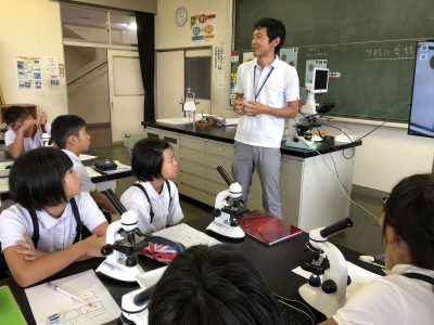 子どもたちは、目の前で起きている受精の瞬間、受精膜の様子、細胞分裂の様子に