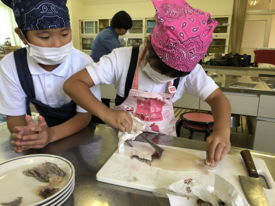 その後、4年生でもできるイカ料理「イカの黄身焼き」を作りました。