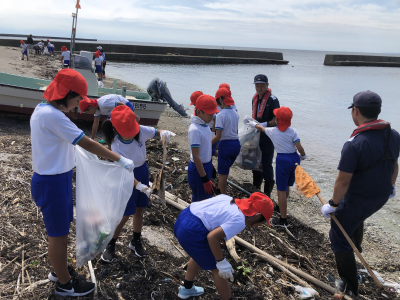 夏休みにも東町の海岸へごみ拾いに出かけました。