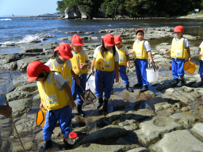 この日は,里海教育研究所の能丸先生,のと海洋ふれあいセンター職員東出さんにご協力いただき,安全に活動をすることができました。