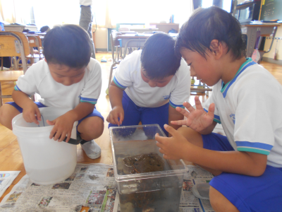 1年生たちは、初めて見る生きものたちに大興奮でした!