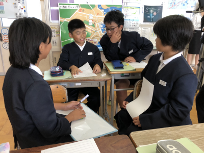 今回の授業を石川テレビさんが取材に来るということで照れる表情も見られましたが,授業が始まると学び考える姿,熱心に話し合う姿に見ていた先生方も驚いていました。