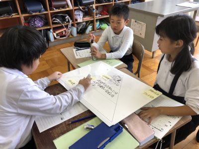 4年生では,これまでに調べてきたことをもとに,何についてどのような方法で発信するのかを話し合いました。