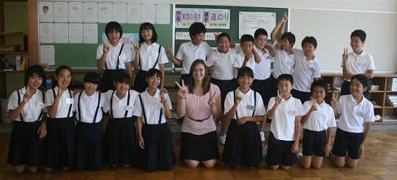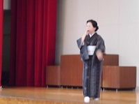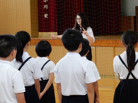 オリビア先生は、小木小学校の思い出を日本語でお話しました。