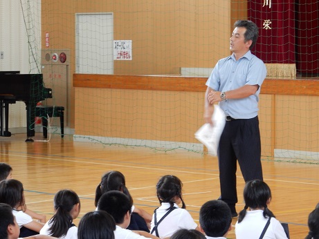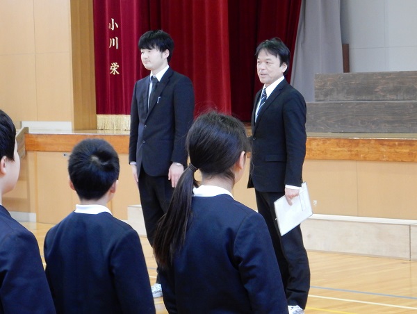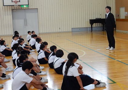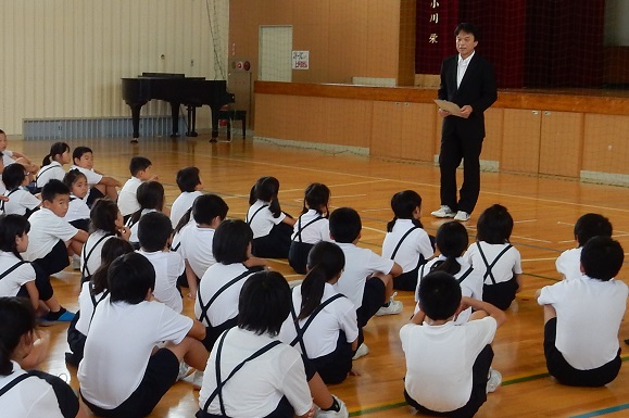 小島校長先生から、「元気にあいさつをすること、先生の話をしっかり聞いて勉強すること、