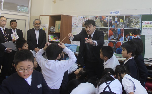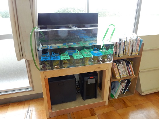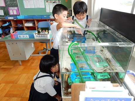 教室の中で常に海の生き物とふれあうことができるためか、とても興味しんしんのようです。