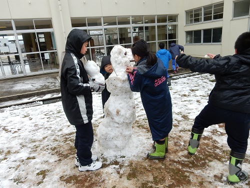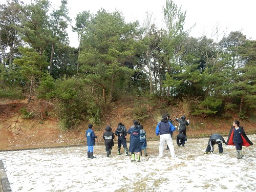 小木小学校のみなさんは寒さをものともせず雪の中の学習をとても楽しんでいる様子でした。