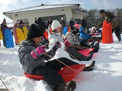 1~2年生はそりを、3~6年生はスキー体験を行いました。