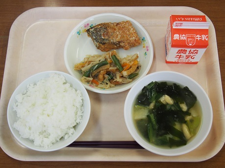ごはん 牛乳 さばの香り揚げ 切干大根の炒め煮 小松菜の味噌汁
