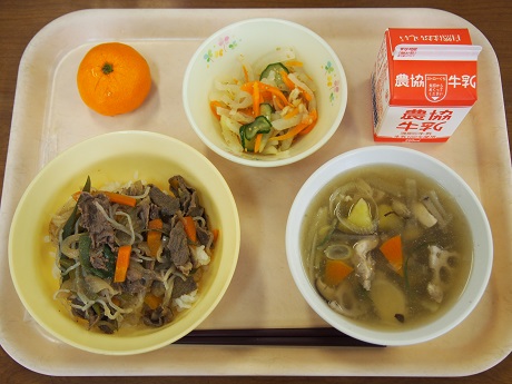 和牛丼 牛乳 あまずあえ こんさい汁 みかん