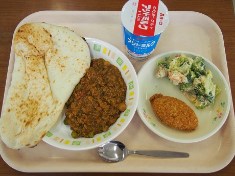 ナン 豆カレー アーモンド和え 北海道コーンフライ のむヨーグルト