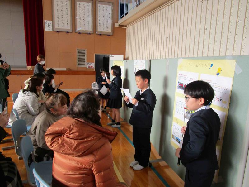 4・5年生が大野町小学校の5年生と交流しました。それぞれ、総合的な学習の時間に学習したことを発表しました。