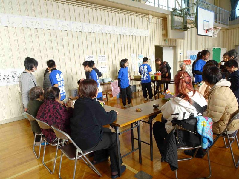 九十九っ交流会を開きました。これは、地域の人を元気づけるために各学年が、劇やゲームコーナーを企画したり、お茶を出したりして地域の方たちをおもてなしする会です。最後に、5・6年生が御船太鼓を披露しました。来て下さったみなさんありがとうございました。