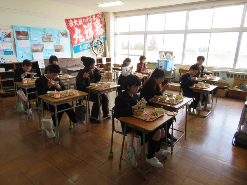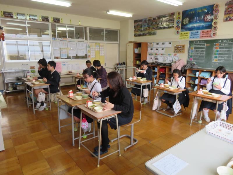 小木中学校へ進学しても、小木小学校の調理室でつくった給食を毎日運びます。4月からもしっかり食べてくださいね!