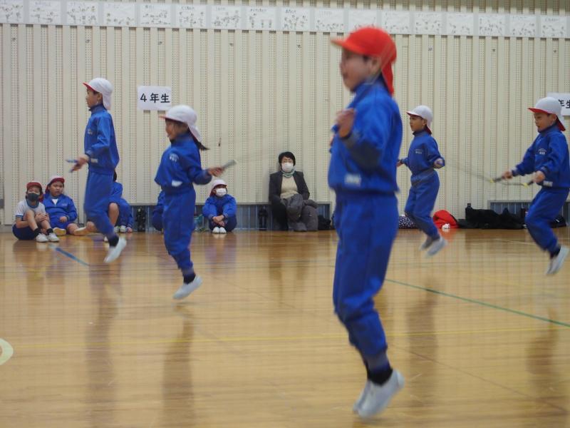 学年別個人種目、すご技チャレンジ、学年別8の字とび、縦割り班対抗8の字とびの4種目が行われました。