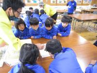 里海遠足の午後、1,2年生は海洋ふれあいセンターで磯観察の学習をしました。まずは、磯で生き物採集をし、その後、室内で採集した生き物の観察をしました。ヤドカリや巻貝などいろいろな生き物に触れながら、真剣な目で生き物を観察していました。今後の生活科の学習につながっていきます。