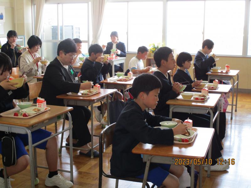 6年生が里海科の学習で考案した「里海給食」が1日の給食で出されました。当日は、6年生の保護者と一緒に「里海給食試食会」を行いました。子どもたちも自分たちで考えた献立を美味しそうに食べていました。