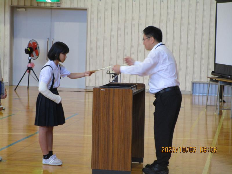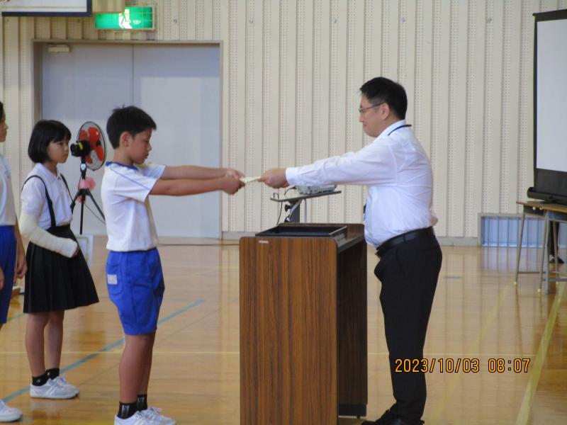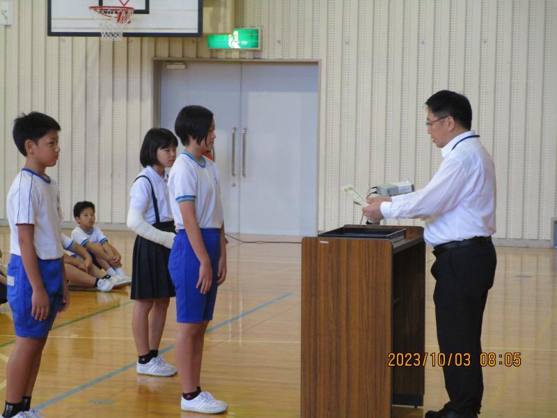 全校児童を代表して、6年生2名が賞状を受け取りました。
