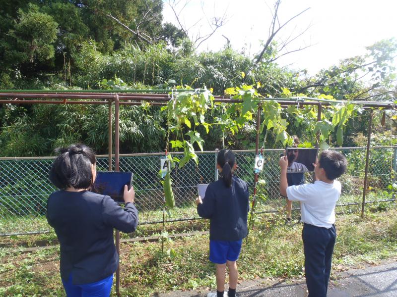 すずしくなったらヘチマの成長はどうなるか観察します。