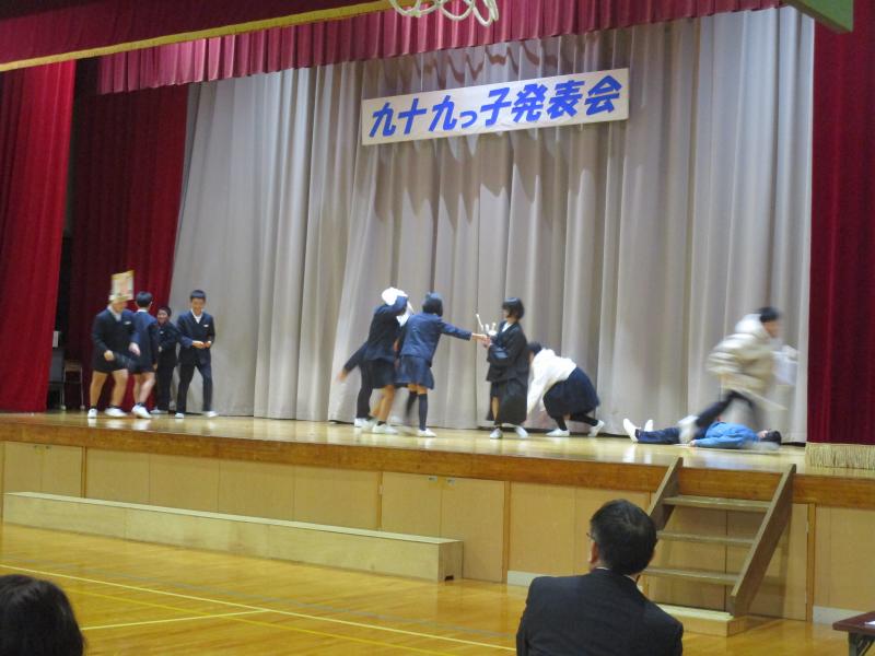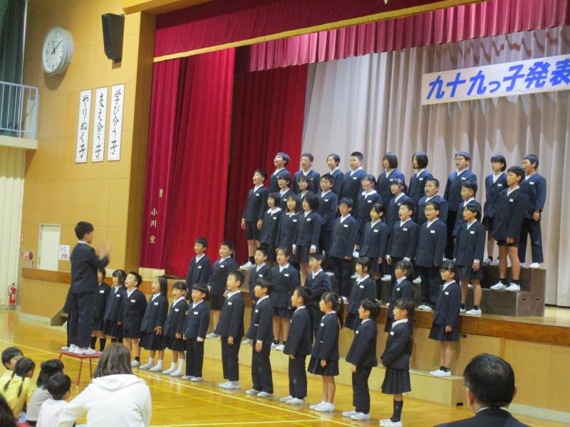 11月6日(月)に九十九っ子発表会が行われました。各学年の学習発表と全校での合唱を披露しました。どの学年も、相手に伝わる大きな声で発表をしていました。全校みんなでがんばりました!