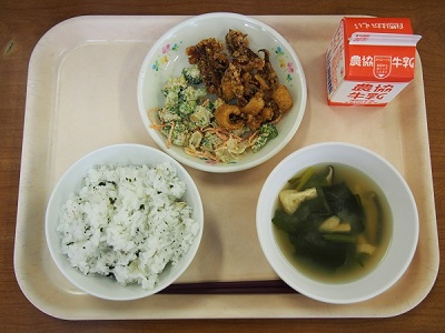 しらすわかめごはん 牛乳 いかのかりん揚げ