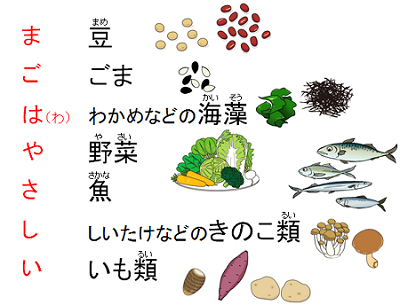 「ま」は豆、「ご」はごま、「は(わ)」はわかめなどの海藻類、