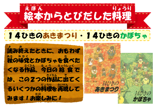 みんなにもっと本に親しんでもらうために、今日は絵本に出てくる料理を給食でだしてみました!