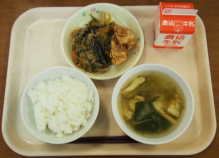 たこめし 牛乳 卯の花の炒り煮 のっぺい汁