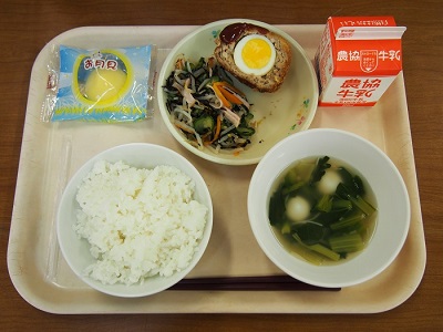 ごはん 牛乳 ひじきのマリネ スコッチエッグ 月見汁