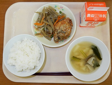 ごはん 牛乳 さばの香り揚げ きんぴらごぼう みそ汁