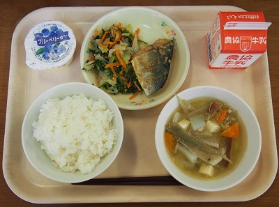 小木小学校の児童はさばが好きな子がたくさんいるため、いつもより早く食べ終わっていました。