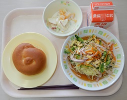ごはん いりどり 春雨サラダ あさりの佃煮 牛乳