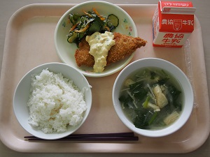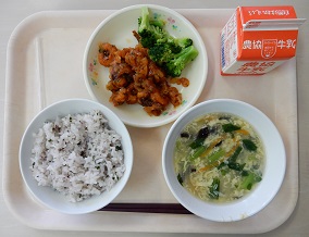 ごはん 牛乳 白身魚のチリソース ごまあえ