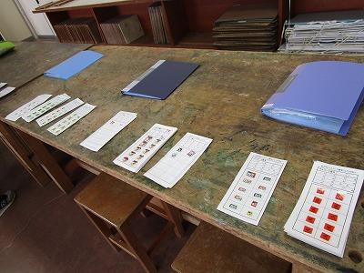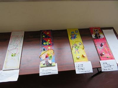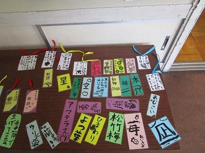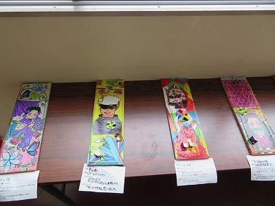 4年生がしおりを作りました。毛筆で好きな言葉を書いてラミネートしました。
