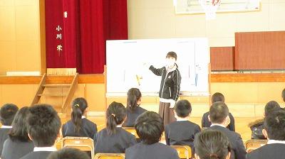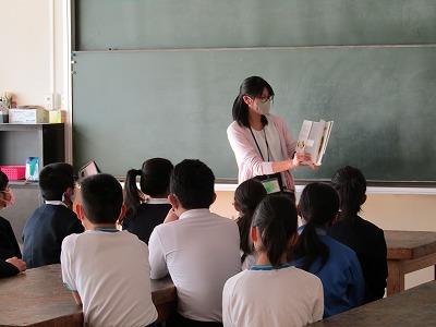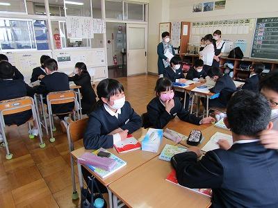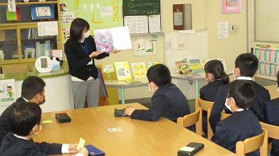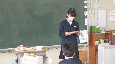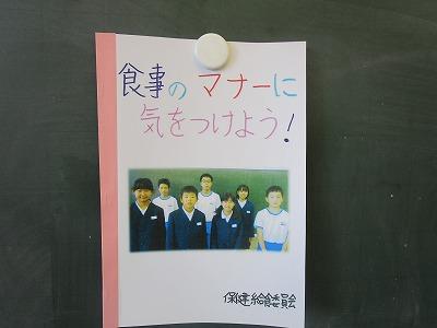 給食時に委員会のメンバーがマナーブックの紹介のため各教室に行きました。