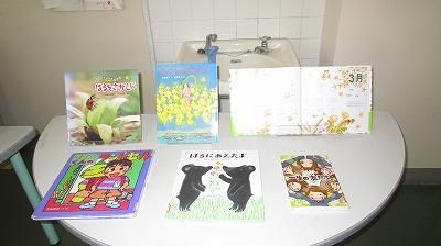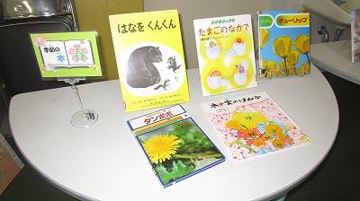 図書室の本紹介コーナーでは春の本が紹介されています。