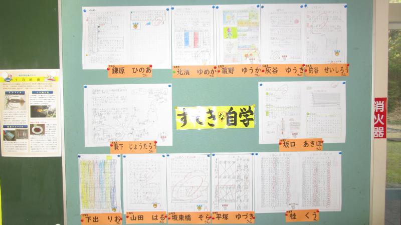 校長賞と教頭賞の自学が児童玄関に掲示されています。