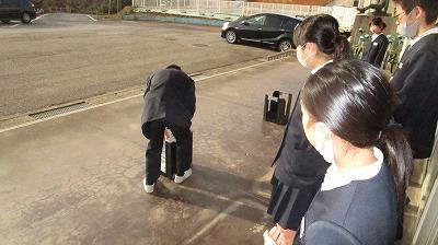 集会委員会が朝の挨拶運動後の振り返りをしています。