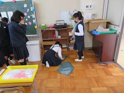 3月になりましたので、掃除の場所が変わります。縦割り班の中で誰がどこをするのかを決めます。