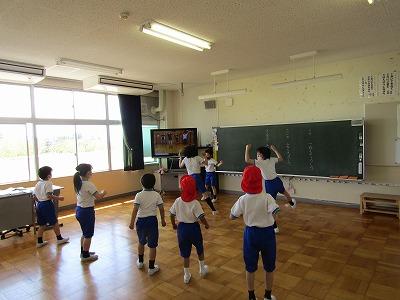 その後、3年生が見本となり、イカ、クジラ、マンボウのチームに分かれてダンス練習です。