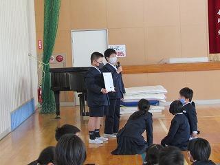 低学年が送る会の演奏に感動したという感想をいってくれました。