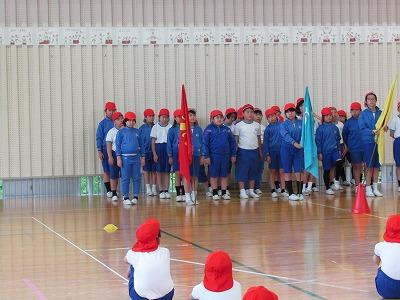 運動会の開閉会式の練習は雨で体育館練習となりました。