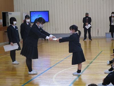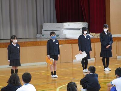 集会委員会から廊下を走る人が少なかった学級の表彰がありました。