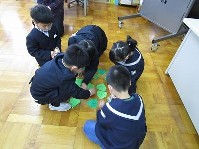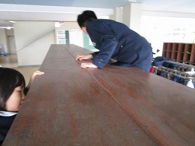 1年生がぶつかって崩してしまったのを写真を手掛かりに並べなおしているのです。