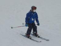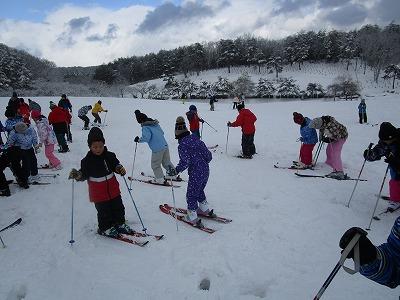 スキー場の天気は雪で,少し寒い中での活動となっていますが,子どもたちはとても楽しそうにスキーに臨んでいます。