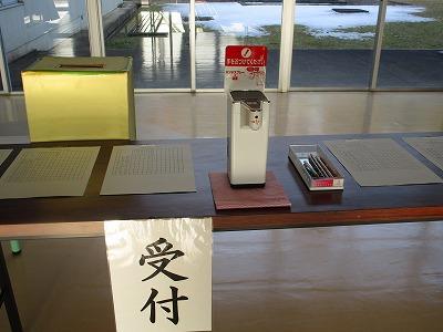 本日の卒業生を送る会の受付時のお願いです。手指消毒及びマスク着用をお願いします。