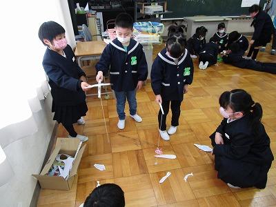 2学期の学習の様子です。2年生が1年生を招いて手作りおもちゃ