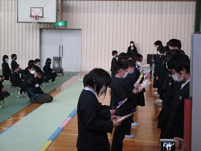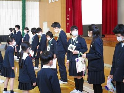 3年生が感謝状を2年生はプレゼントを渡しました。
